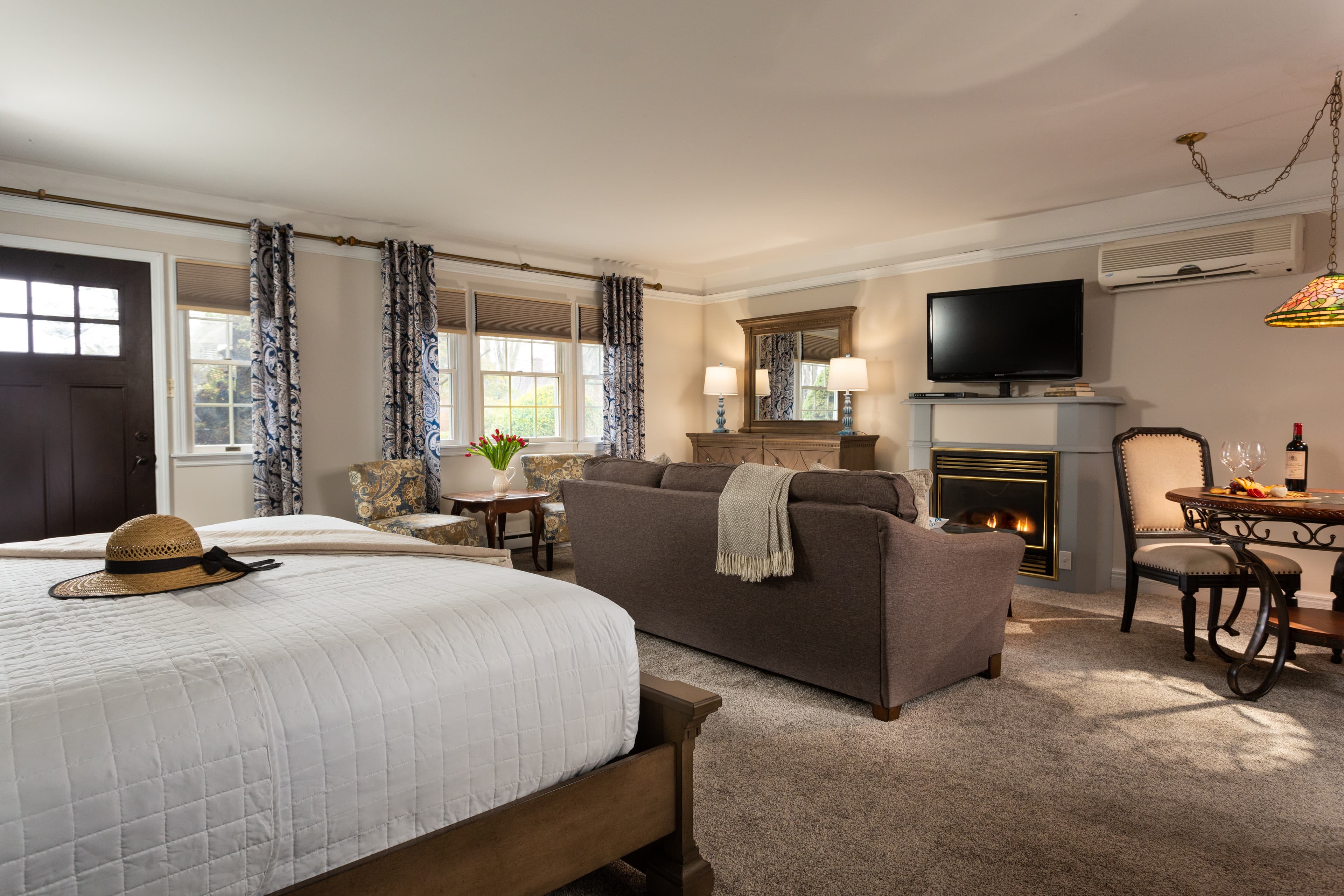 Beautifully decorated with a king bed plus a queen sofabed; located on the first floor of the Carriage House with Fireplace and Whirlpool Tub.